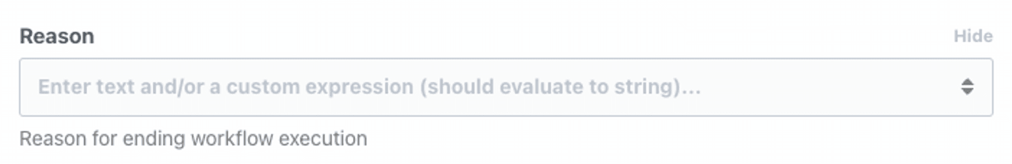 You may configure an optional reason for ending the workflow execution. This reason will be surfaced when inspecting the event execution.