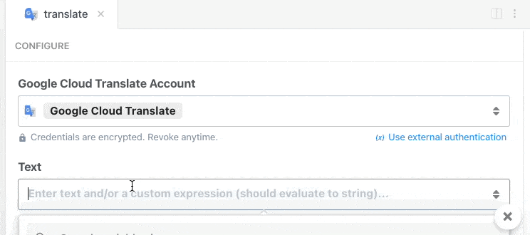 To manually enter or edit an expression, just enter or edit a value between double curly braces{{ }}. Pipedream provides auto-complete support as soon as you type.